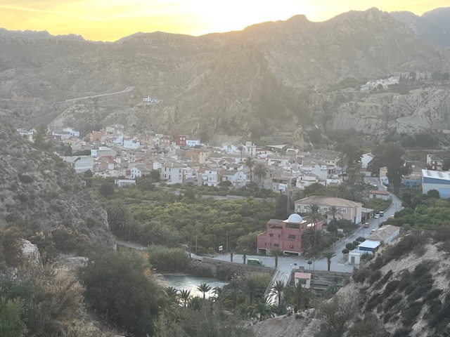 The name Ojós means orchards in Arabic and relates to the fertile grounds of the wide valley upon which oranges and lemons grow, bordered on both sides by spectacular bare and rugged mountains of the Sierra de Ricote, popular with climbers and hikers. Last afternoon and this morning I took in the special landscape, which looks at its best in the fading sunlight of the early morning and late afternoon.