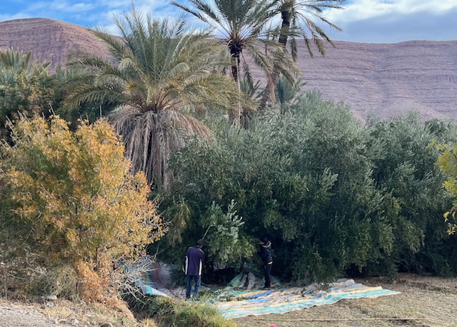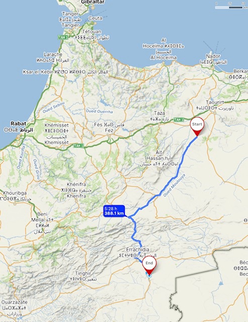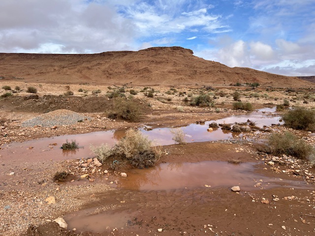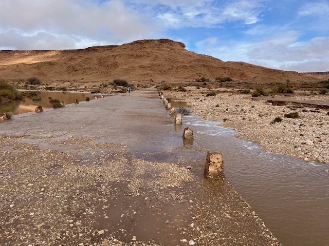 Bad weather was forecast for the weekend, heavy rain, and some of this was predicted to fall as snow where I was, so I drove a couple of hours south, to a lower altitude, through the town of Errachidia to a campsite again on the Ziz river, near the smaller town of Aoufous. This was a bigger campsite, and had three other French motorhomes staying, though room for many more. One of the motorhomes was an older guy and his wife, both in their 80s, who were regular visitors along with their quad bike, which they towed, and drove off into the surrounding mountains each day.