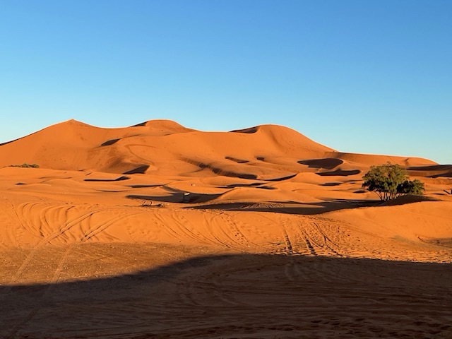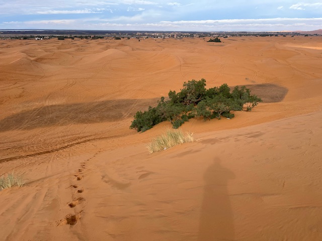 It was 1991 I was last in Morocco and the Sahara, and those days the locals wouldn’t leave tourists alone, to the extent where was unpleasant. Fortunately, in places like Merzouga at least, those days are gone. Those running the businesses have learnt the hard way that visitors don’t respond to being hassled. Litter is still a huge problem around the roadside, but on the campsites, and within the grounds of hotels, the places are impeccable. I based myself behind one of the hotels, as it had the best views of the Erg Chebbi dunes, the main attraction of Merzouga. This is the far western edge of the Sahara, and the most famous of Moroccans ‘ergs’, a sea of red sand dunes which in places, close to where I was, raise two hundred metres in altitude from the desert.