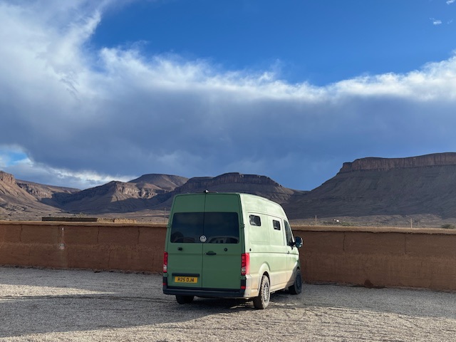 I’ve changed my schedule as a result of the couple of issues with the van. The first one, Starlink, was ironically sorted out almost immediately after i purchased the eSIM. A Starlink human got in touch and succeeded in unsticking my reboot, and apologised and gave me two months free by way of compensation. Regarding the fridge, I have located someone who can repair it, I hope, in Agadir. I am headed to Agadir anyway, but I wasn’t going to be there for a couple of weeks. Instead, I aim to get there on Friday, get the repair done, and then lengthen my time around the Anti-Atlas, which is, I read, the best place to be for outdoor activity at this time of year. Agadir is three days of driving at three hours each day, slow because of the state of the roads after the rain. Today I drove three hours, two hundred kilometres, to Nkob, where I am currently at a campsite a few kilometres out of town. There should be a possibility of a wander tomorrow morning before continuing.
