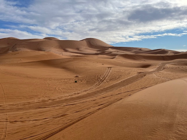 On Monday I moved on, initially half an hour to the town of Erfoud to sort out an eSIM for my phone while I waited for a Starlink human support to get back to me, over the weekend it had just been robots, helpful robots, but ultimately useless. Having sorted the eSIM it was a further half hour south to the Sahara desert and the town of Merzouga, which normally is tourist driven group of hotels, campsites, restaurants, souvenir shops, camel rides, and quad bike hire stations, but with the weekend weather was in sleep mode. Perfect as far as I was concerned. the were a few other vans, but considering that there are probably ten campsites, a small number, and very shared out.