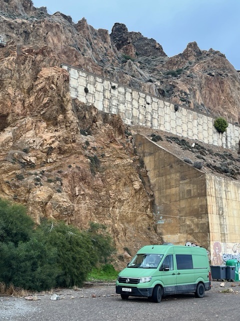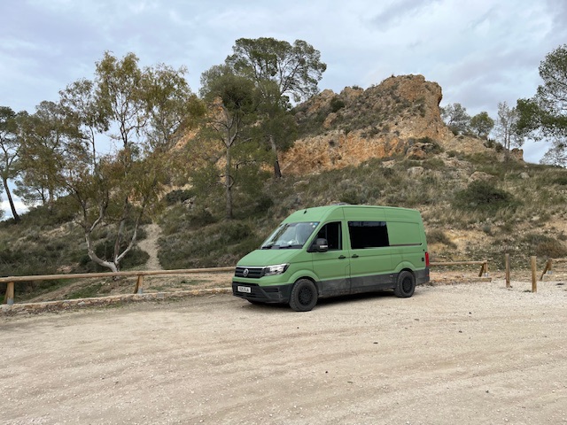I found a place by chance, near three other British vans; remarkable, as I have seen so few British vehicles on the road. During the afternoon I got talking to the two single women in two of the vans. They had met up and were travelling together for a few days. As the daylight faded, we walked into town together and found a bar. Christine was 68, a retired mental health nurse from Norwich who spent the three winter months travelling in the south of Europe. She had only had her van for a couple of years, and was about to leave it at Alicante airport for a couple of weeks and fly to Marrakesh and meet a friend. From Marrakesh they would do day trips around the country, and I gave her some suggestions of places to go. The other lady, Rachel, was fifteen years younger, and on an extended break from work in digital media. I asked her where she was from, and she said the Lake District, but it turned out she actually meant Kirkby Lonsdale. I know people at the school there that she knew also by chance.