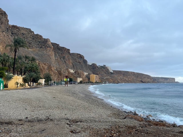 After just 45 minutes driving from Algericas I found a good place to spend the night about 10 kilometres east of Estepona and directly on the beach. There were a couple of vans there, but plenty of room. By chance, it was a walk from the Jaipur Indian Restaurant and in the early evening I walked down the beach for a couple of kilometers to pick up a takeaway. It’s was fine, but as is usually the case in Europe, lacking in spice.
