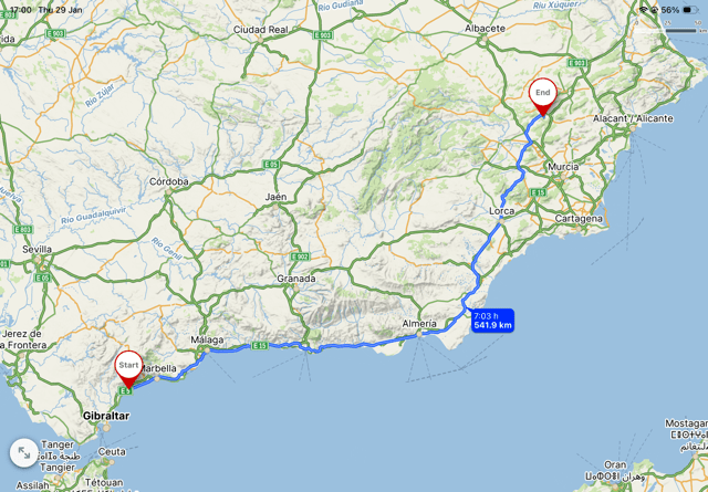 One reason the coast was not so busy, is that it was in the middle of three storms. Cyclone Harry hit the southern Mediterranean and the Straits of Gibraltar as I was crossing. My ferry was the last of the day to come over, the rest were cancelled. Harry came off the back of Storm Ingrid, named by the Portuguese, the tail of which hot southern Spain, and it had an effect on southern England also. A day later Storm Joseph was to hit southern Spain, named by the Spanish. I caught that the following day, Tuesday and Wednesday.