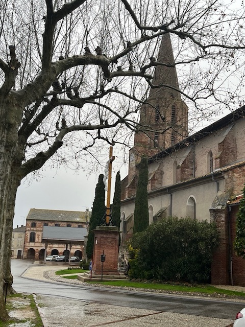 I drove for a couple of hours round Toulouse and then up to the Lot region. All of the major rivers here were on severe alert, the Lot, the Tarn and the Garonne. My destination today, Saint-Nicolas-de-la-Grave, is where the Tarn and Garonne meet, an hour or so north of Toulouse. I stayed at the aire in the centre of town, trying to get out to walk around in between the heavy bursts of rain, with mixed success.