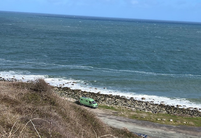 At Penmon Point the land in the far southeast of the island much of the land is owned by the Baron Hill estate. They operate a toll road to the lighthouse and beach that is a couple of miles long, but right at the coast has two car parks. They permit overnight stays for the cost of using the road, £7.50 for vans. During the week, I used the car park right by the lighthouse, where there is a cafe as well. There were a few other visitors, but with windy and showery conditions, it was quite quiet. At the weekend I moved to other car parks, on a narrow and rough road which put most visitors off.
